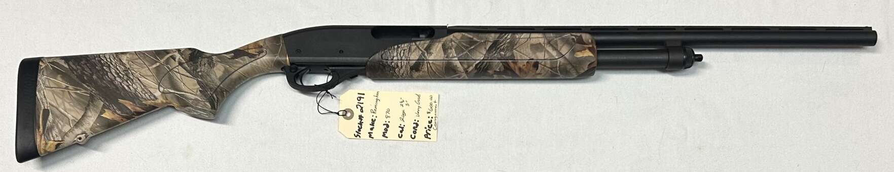 Home / Shop / Used Shot Guns / Remington / Remington 20ga #2191 Remington 20ga #2191$60000 Remington 20ga #2191 quantity Add to cart SKU: 2191 Categories: 20 gauge, Remington, Used Shot Guns Tag: 2191 Product ID: 13603 Description Reviews (0) Description 2-3/4-3″ Chamber Model:870 Pump Action Camo synthetic stock 21” vented rib barrel with mod screw in choke VERY GOOD CONSIGNMENT Reviews There are no reviews yet. Be the first to review “Remington 20ga #2191” Cancel replyYour email address will not be published. Required fields are marked *Name * Email * Save my name, email, and website in this browser for the next time I comment. Your rating * Rate… Perfect Good Average Not that bad Very poor Your review * I agree that my submitted data is being collected and stored. For further details on handling user data, see our Privacy Policy Related products J. Stevens 12ga $50000 Winchester 16ga / Stock#605 $17500 Tobin Arms MFG 16ga $50000
