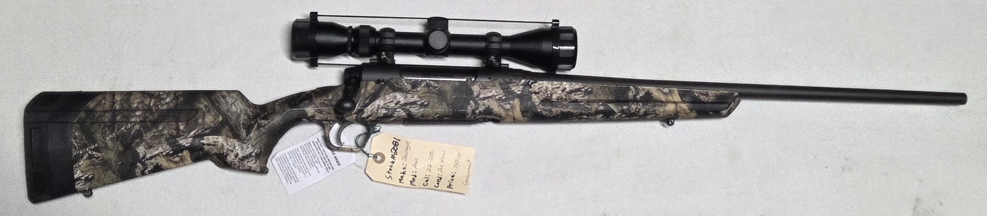 Home / Shop / Ammunition / Rifle / 22-250 / Savage 22-250 #2081 Savage 22-250 #2081$75000 Savage 22-250 #2081 quantity Add to cart SKU: 2081 Categories: 22-250, Savage, Used Rifles Tag: 2081 Product ID: 13337 Description Reviews (0) Description Model:Axis Bolt Action Synthetic mossy oak stock 22.5”barrel sling swivels 3x9x40 weaver scope AS NEW CONSIGNMENT Reviews There are no reviews yet. Be the first to review “Savage 22-250 #2081” Cancel replyYour email address will not be published. Required fields are marked *Name * Email * Save my name, email, and website in this browser for the next time I comment. Your rating * Rate… Perfect Good Average Not that bad Very poor Your review * I agree that my submitted data is being collected and stored. For further details on handling user data, see our Privacy Policy Related products Husquarna AB 8mm Stock # 980 $60000 CARC 6.5×52 Surplus / Stock# 202 $40395 Parker Hale 308 Norma Stock # 985 $1,20000