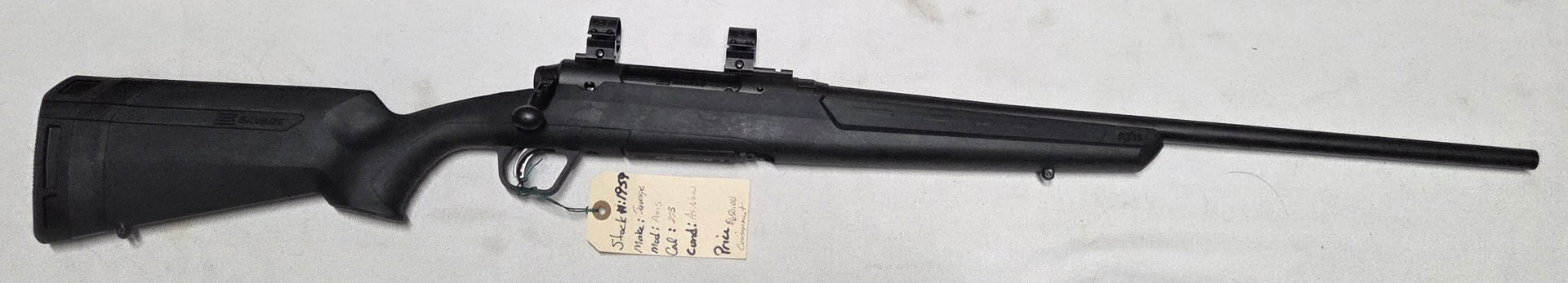Home / Shop / Used Rifles / Savage / Savage Axis / Stock# 1959 Savage Axis / Stock# 1959$65000 Savage Axis / Stock# 1959 quantity Add to cart SKU: 1959 Categories: Savage, Used Rifles Tags: 1959, consignment Product ID: 13042 Description Reviews (0) Description Savage Axis 223 Bolt Action Black synthetic stock 22” barrel Removable mag Rings and bases Sling studs As new consignment Reviews There are no reviews yet. Be the first to review “Savage Axis / Stock# 1959” Cancel replyYour email address will not be published. Required fields are marked *Name * Email * Save my name, email, and website in this browser for the next time I comment. Your rating * Rate… Perfect Good Average Not that bad Very poor Your review * I agree that my submitted data is being collected and stored. For further details on handling user data, see our Privacy Policy Related products Savage 303 / Stock # 134 $60000 Savage 1899 / Stock# 13 $65000 Winchester 32SW / Stock#725 $1,00000