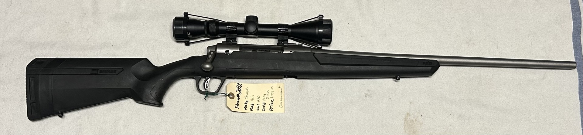 Home / Shop / Used Rifles / Savage / Savage Axis / Stock# 2092 Savage Axis / Stock# 2092$75000 Savage Axis / Stock# 2092 quantity Add to cart SKU: 2092 Categories: Savage, Used Rifles Tags: 2092, consignment Product ID: 13363 Description Reviews (0) Description Savage Axis 270 Bolt Action Black synthetic 21” stainless barrel with scope bases sling swivels viridian 3x9x40 scope very good condition consignment Reviews There are no reviews yet. Be the first to review “Savage Axis / Stock# 2092” Cancel replyYour email address will not be published. Required fields are marked *Name * Email * Save my name, email, and website in this browser for the next time I comment. Your rating * Rate… Perfect Good Average Not that bad Very poor Your review * I agree that my submitted data is being collected and stored. For further details on handling user data, see our Privacy Policy Related products Black Creek 308 win #1036 $1,25000 CARC 6.5×52 Surplus / Stock# 202 $40395 Savage 1899 / Stock# 13 $65000