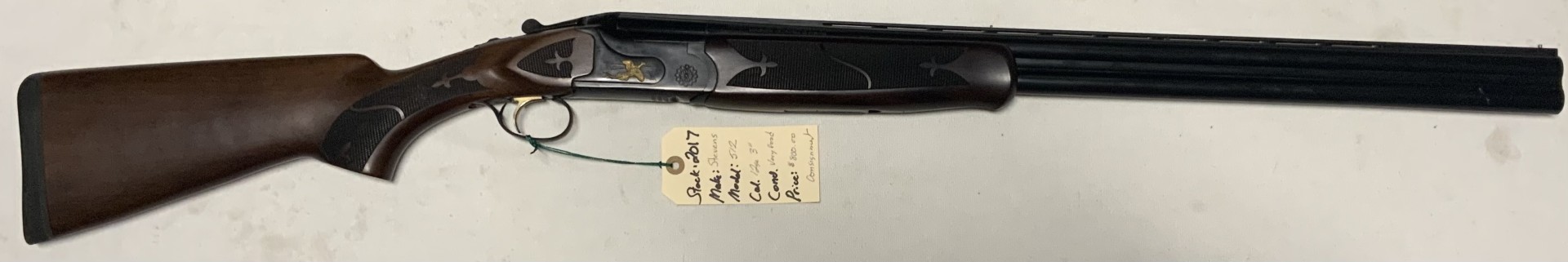 Home / Shop / Used Shot Guns / Stevens / Stevens 12ga #2017 Stevens 12ga #2017$80000 Stevens 12ga #2017 quantity Add to cart SKU: 2017 Categories: 12 gauge, Stevens, Used Shot Guns Tag: 2017 Product ID: 13196 Description Reviews (0) Description 3″ Chamber Model:512 Over/under Wood Stock Gold Inlay Pheasants on Reciever 28” blue barrels with screw in chokes VERY GOOD CONSIGNMENT Reviews There are no reviews yet. Be the first to review “Stevens 12ga #2017” Cancel replyYour email address will not be published. Required fields are marked *Name * Email * Save my name, email, and website in this browser for the next time I comment. Your rating * Rate… Perfect Good Average Not that bad Very poor Your review * I agree that my submitted data is being collected and stored. For further details on handling user data, see our Privacy Policy Related products Weatherby 12 ga Pump – Stock #562 $57500 Stevens 16ga $22500 Mossberg 16 ga / Stock # 602 $29500